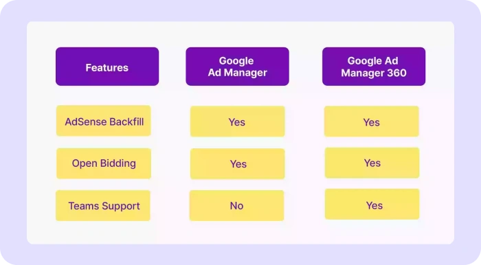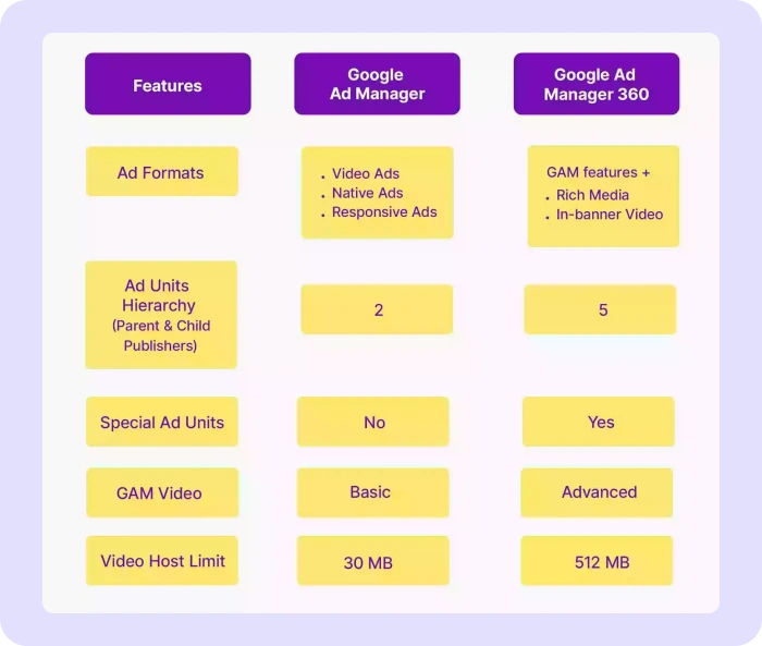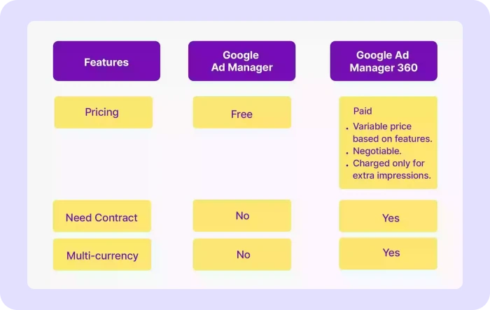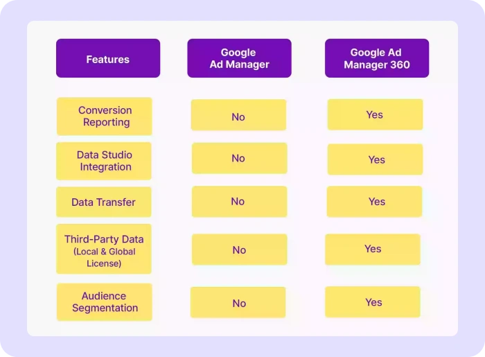 However, the two platforms differ in their features and capabilities, with Google Ad Manager 360 offering more advanced options for high-volume publishers. Other differences include,